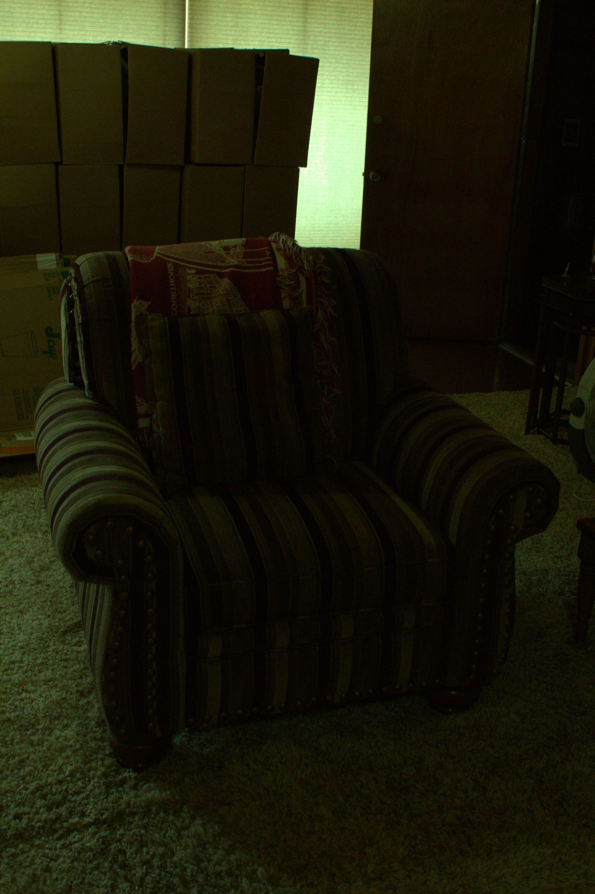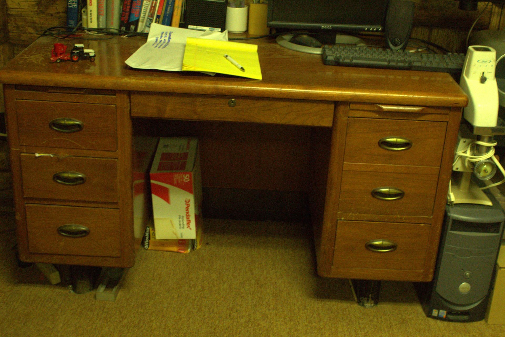 LIVING ROOM FURNITURE: Old oak wood coffee table with 2 end tables, red leather couch, ottoman, stackable tables, child’s rocking chair, wood magazine rack, maple drop leaf table, couches, coffee table with 2 end tables, spot chairs, antique spot chair, emerald marble top table, ranch oak desk and chair, office desk and chair, old wood end table.