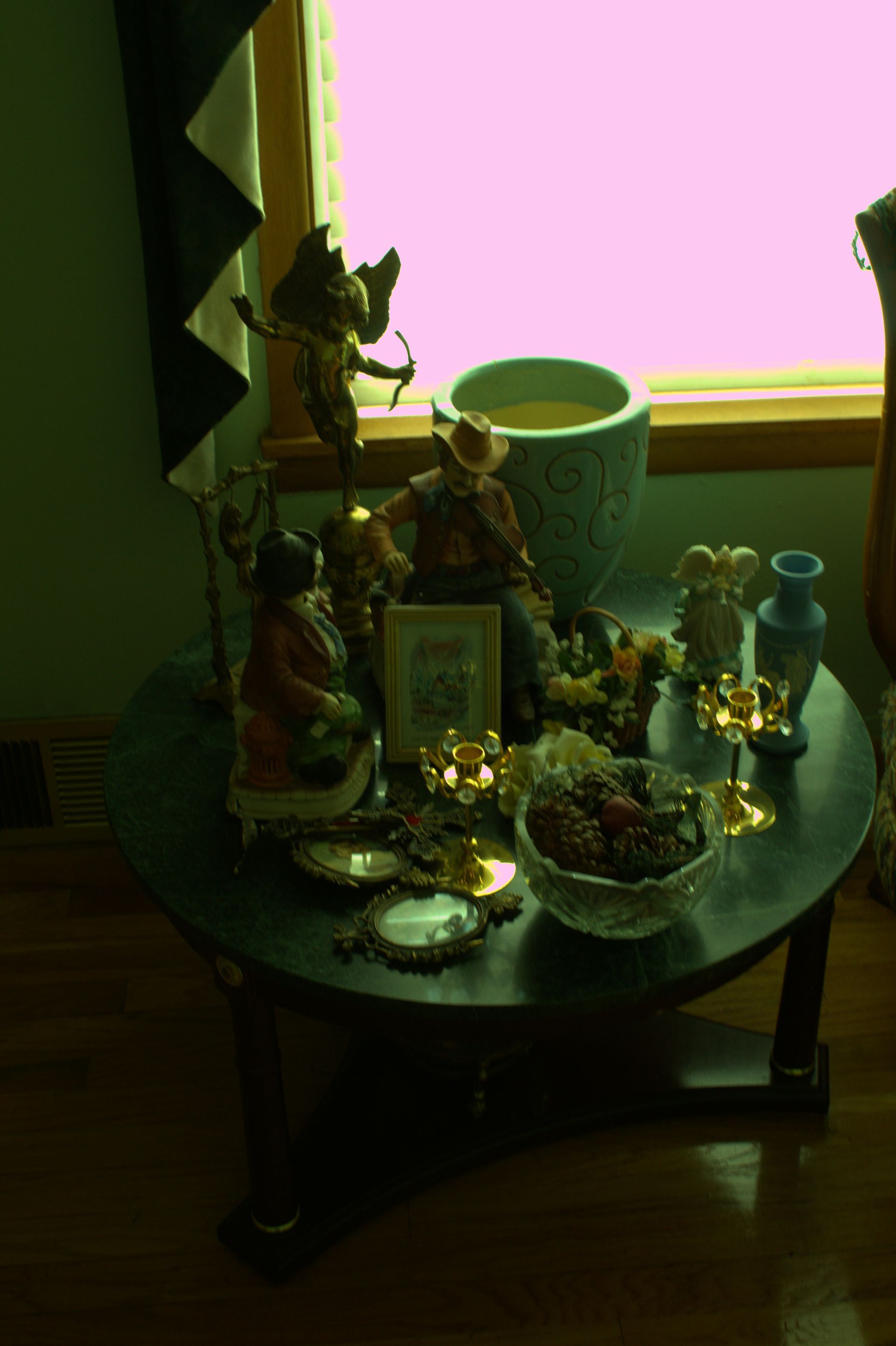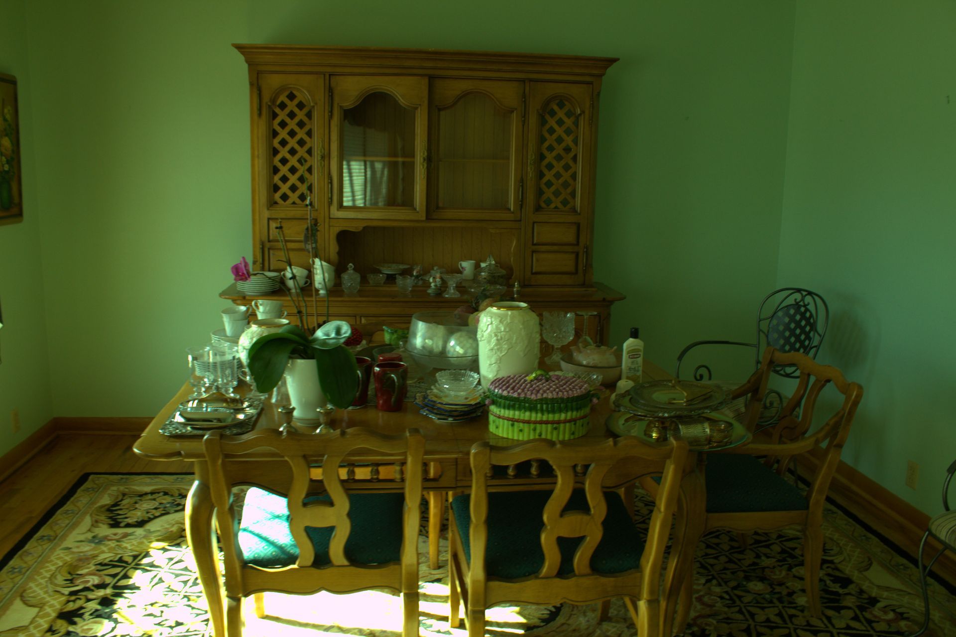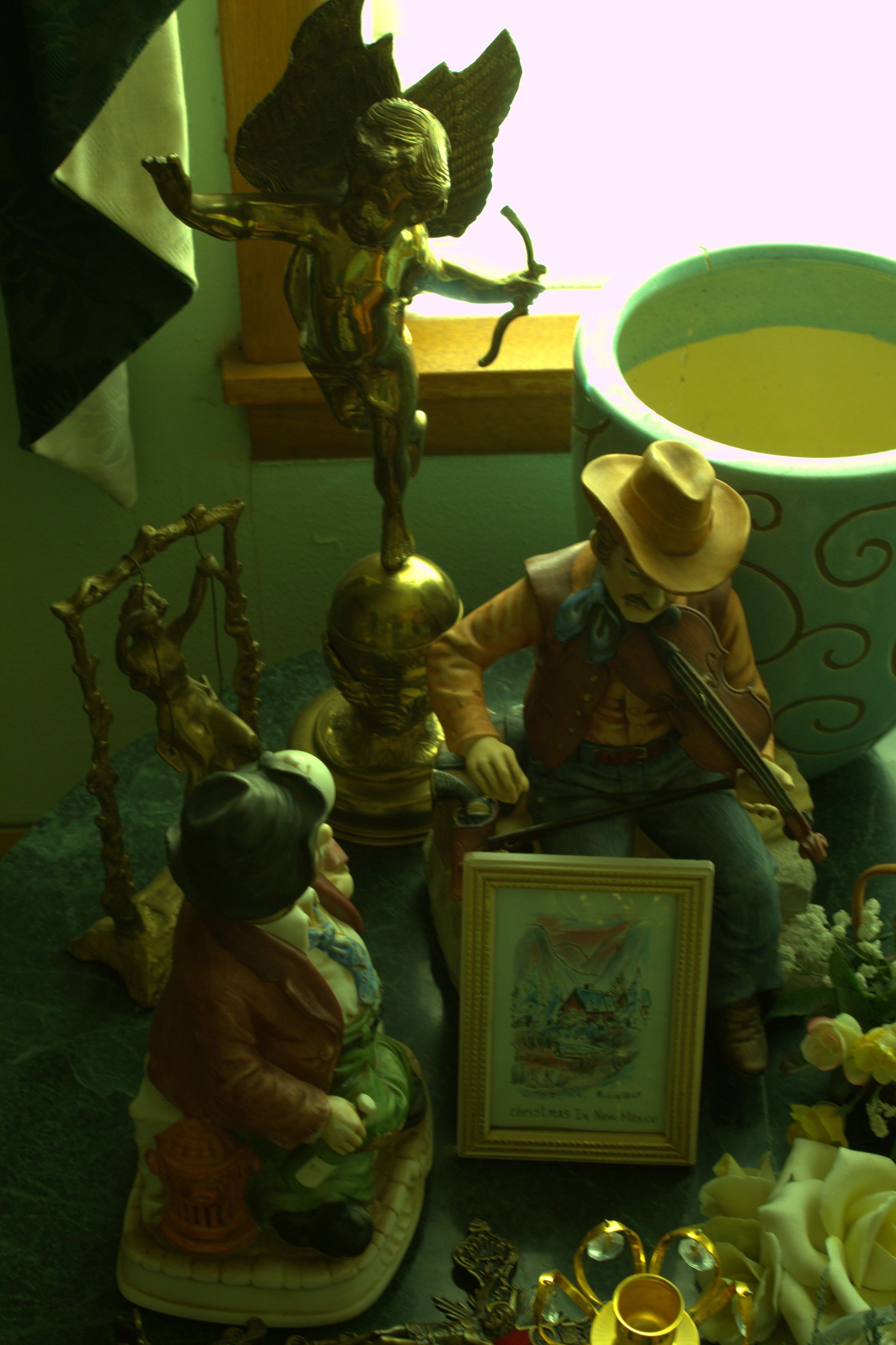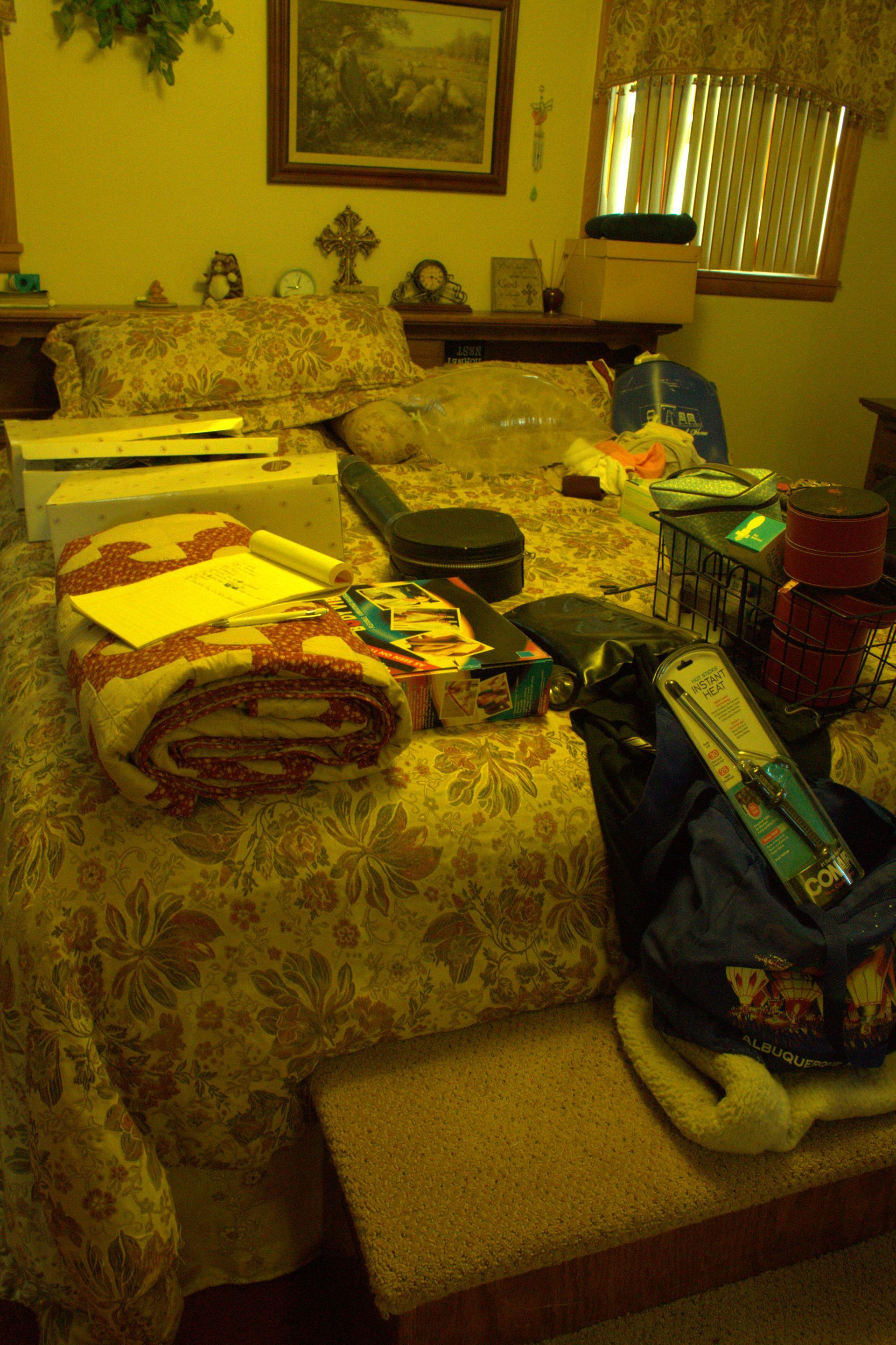 MISC: Glass-fronted gun cabinet, niche sewing machine with cabinet, Lance Wiseman paintings, Geraldine Green painting, RF Harrett paintings, The Ashton Drake Galleries porcelain dolls, Lionel trains, Stanley thermos, Samsung flatscreen TV with TV stand, Blu-ray DVD player, lighters, candle holders, Italian collectibles, Italian cookbooks, German steins, cuckoo clock, picture frames, paintings, prints, lamps, bottles with contents, Seiko “Melodies in Motion” clock, clocks, wall décor, state map, movie screen and projector, canning jars, fridge magnets, statues, floor rugs, women’s clothes, copper wall décor, Dell computer and printer, InstaCrate, books, exercise pedals, Christmas décor, silver-plated pieces, sterling silver candle holders, CorningWare, pink chair, stuffed animals, doll display cases, greenery, closet shoe rack, doll vanity, paper shredder, wall décor, Indian print, The Silent One exercise bike, quilts, crock churn, wheelbarrows, garden tools, rototiller, air compressor, shop vac, fuel-burning heater, lawnmower.