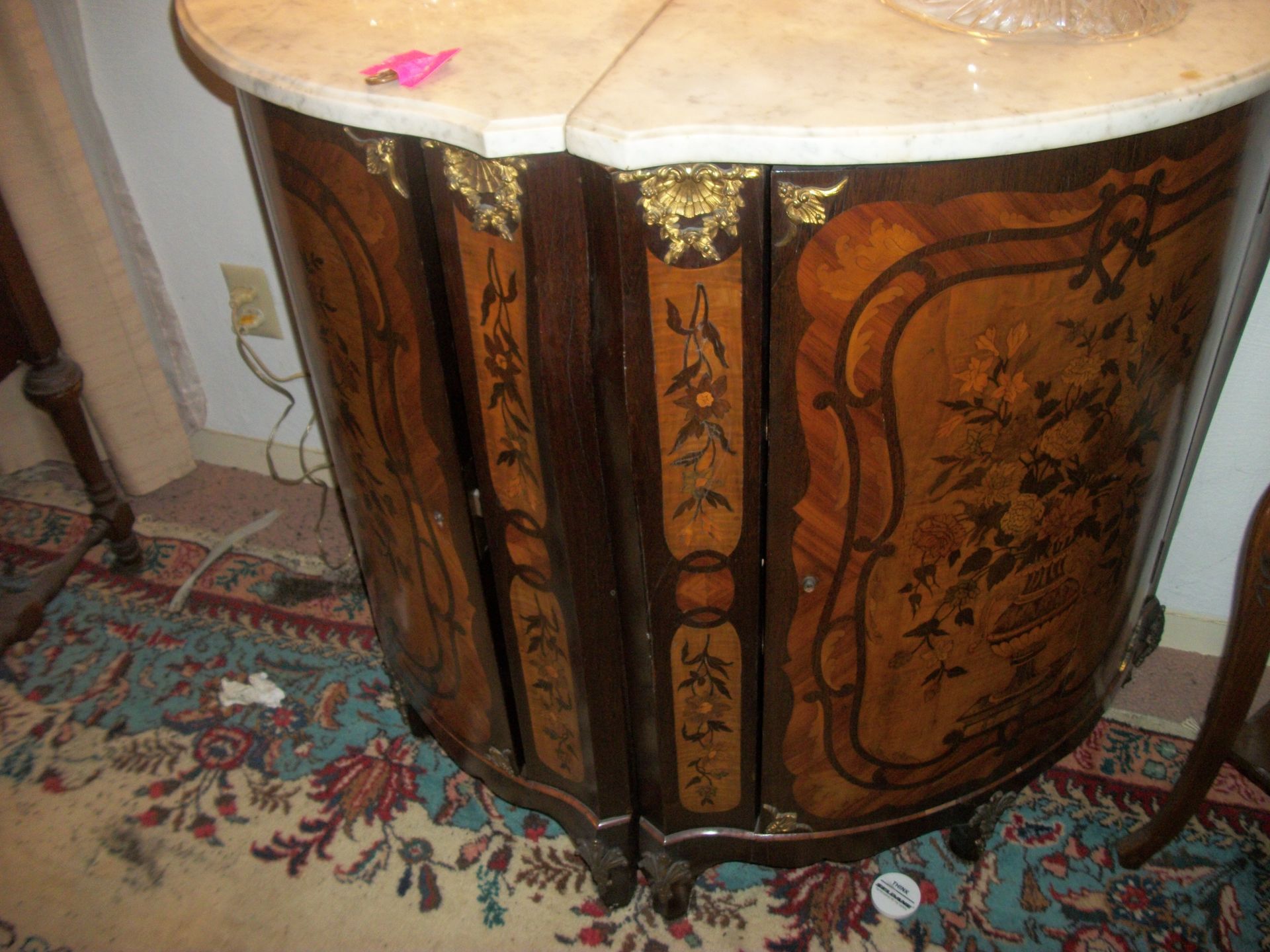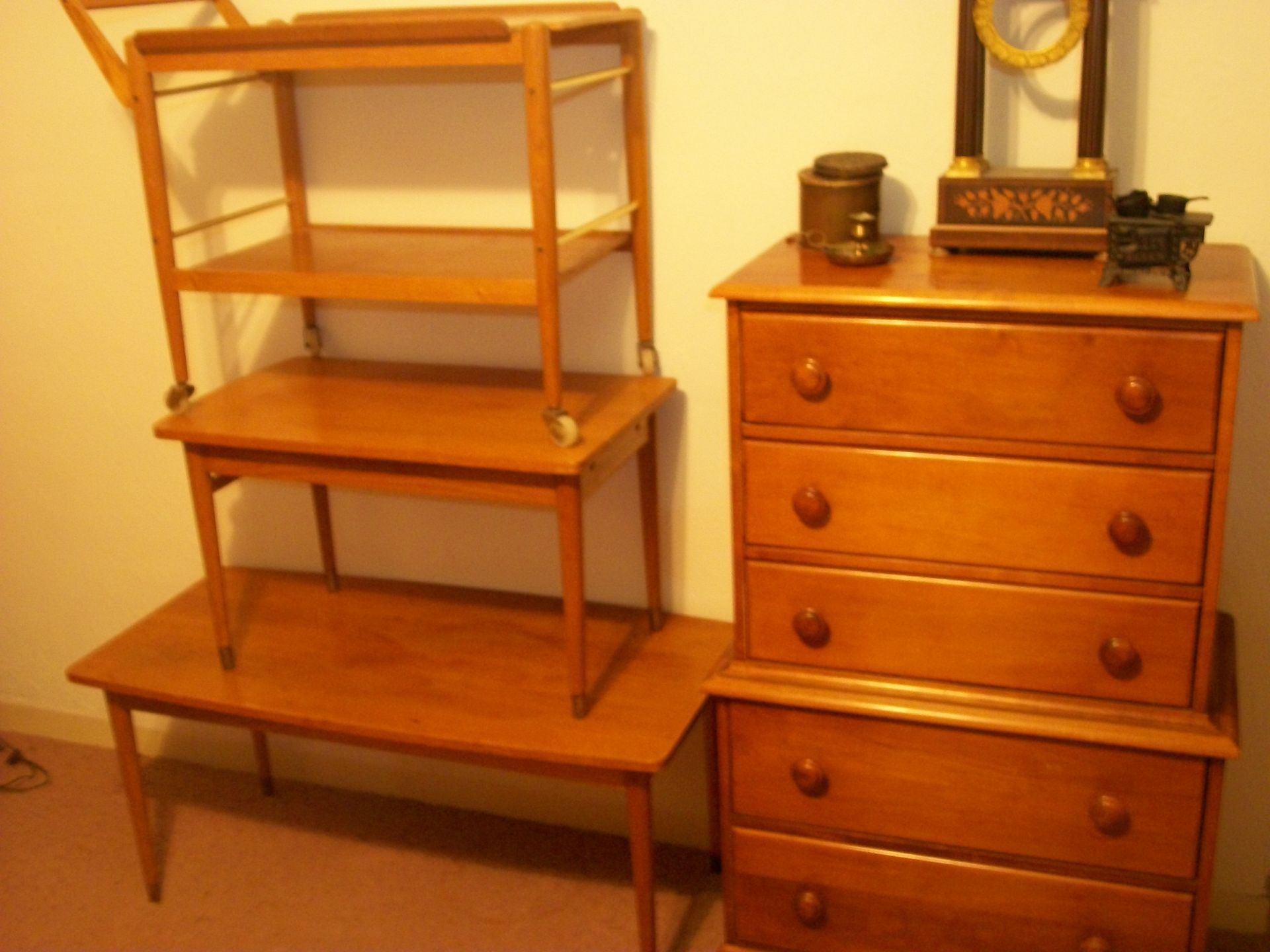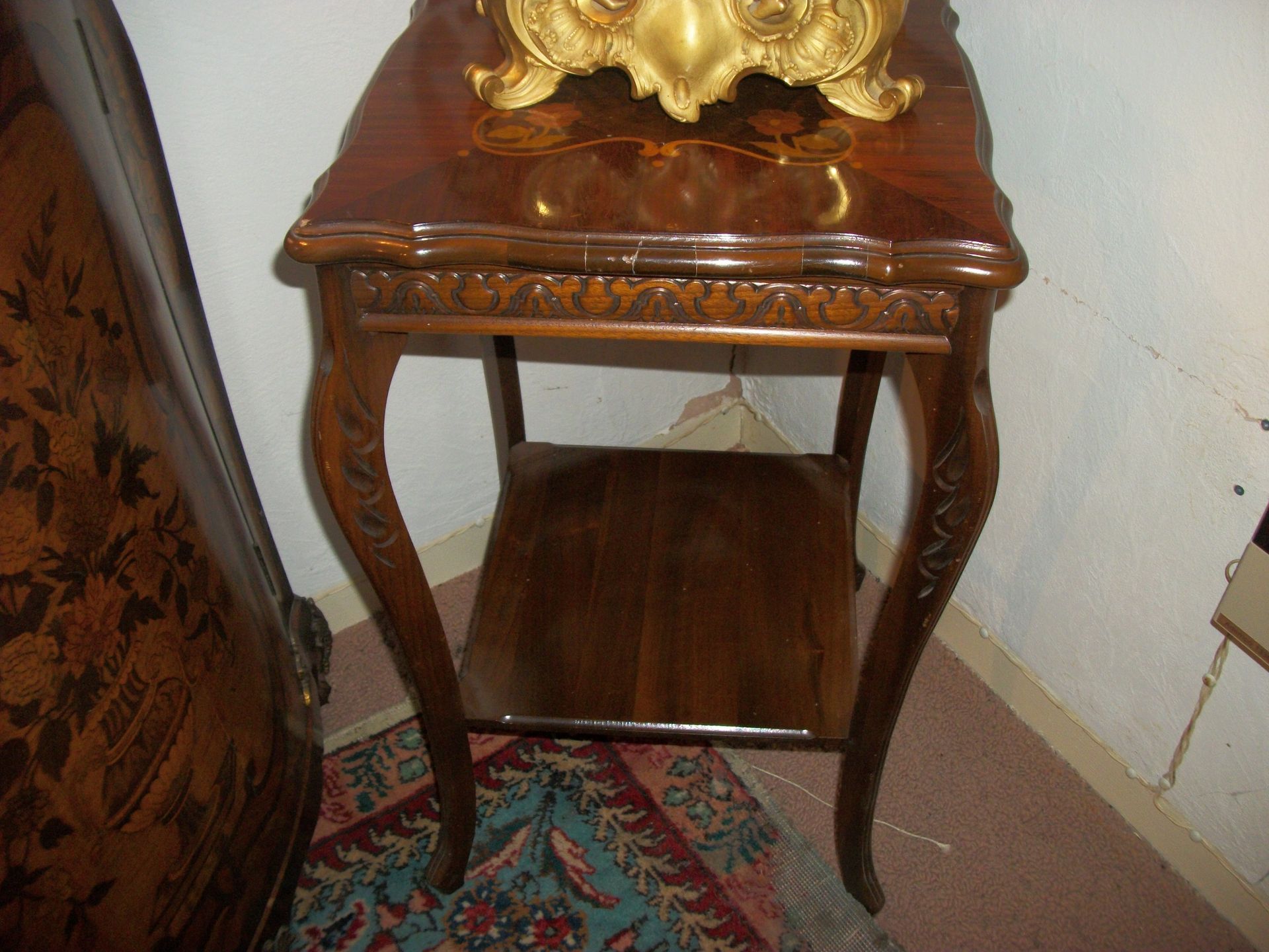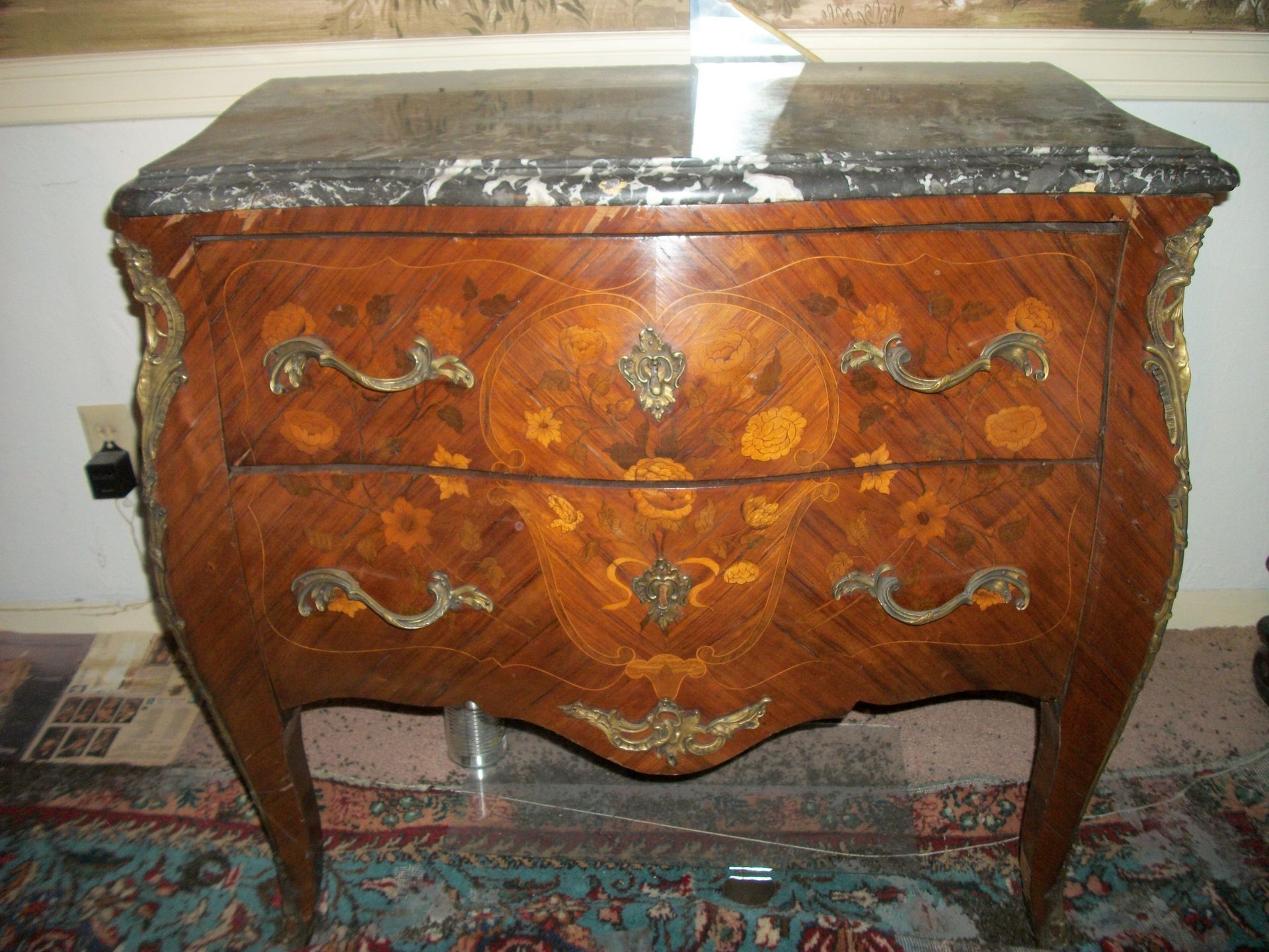 ANTIQUE FURNITURE: Handcrafted China cabinet, marble top chest, marble top end tables/storage, small China cabinet colina/style, wood lamp tables, antique cabinet, dragon leg/footed tables, leather/wood carved dragon claw footed chairs, solid wood 3 pc bedroom suite dresser, chest, bed, drop front desk, 3/4/5 drawer chest, marble top lingerie cabinet, full size hand carved bed, hand carved buffet, claw footed organ stool, marble top night stand, twin bed, coffee table, end table, tea cart, wood 4 drawer filing cabinet, oak library tables, porcelain cook stove, dining table/6 chairs, settee bench, 2/3/4/5/6 deep lawyer bookcases, smoke stand, rocker, fireplace screen