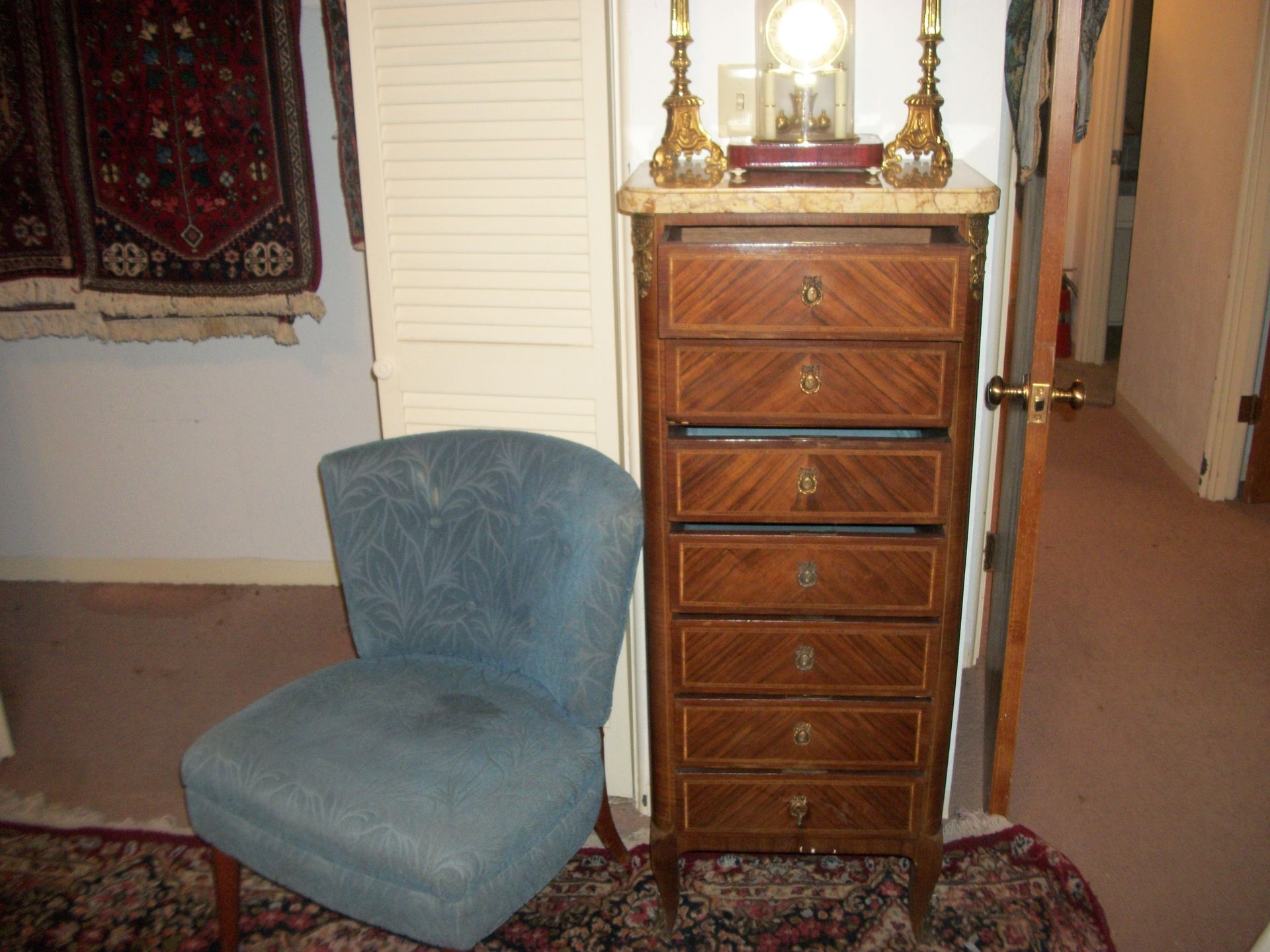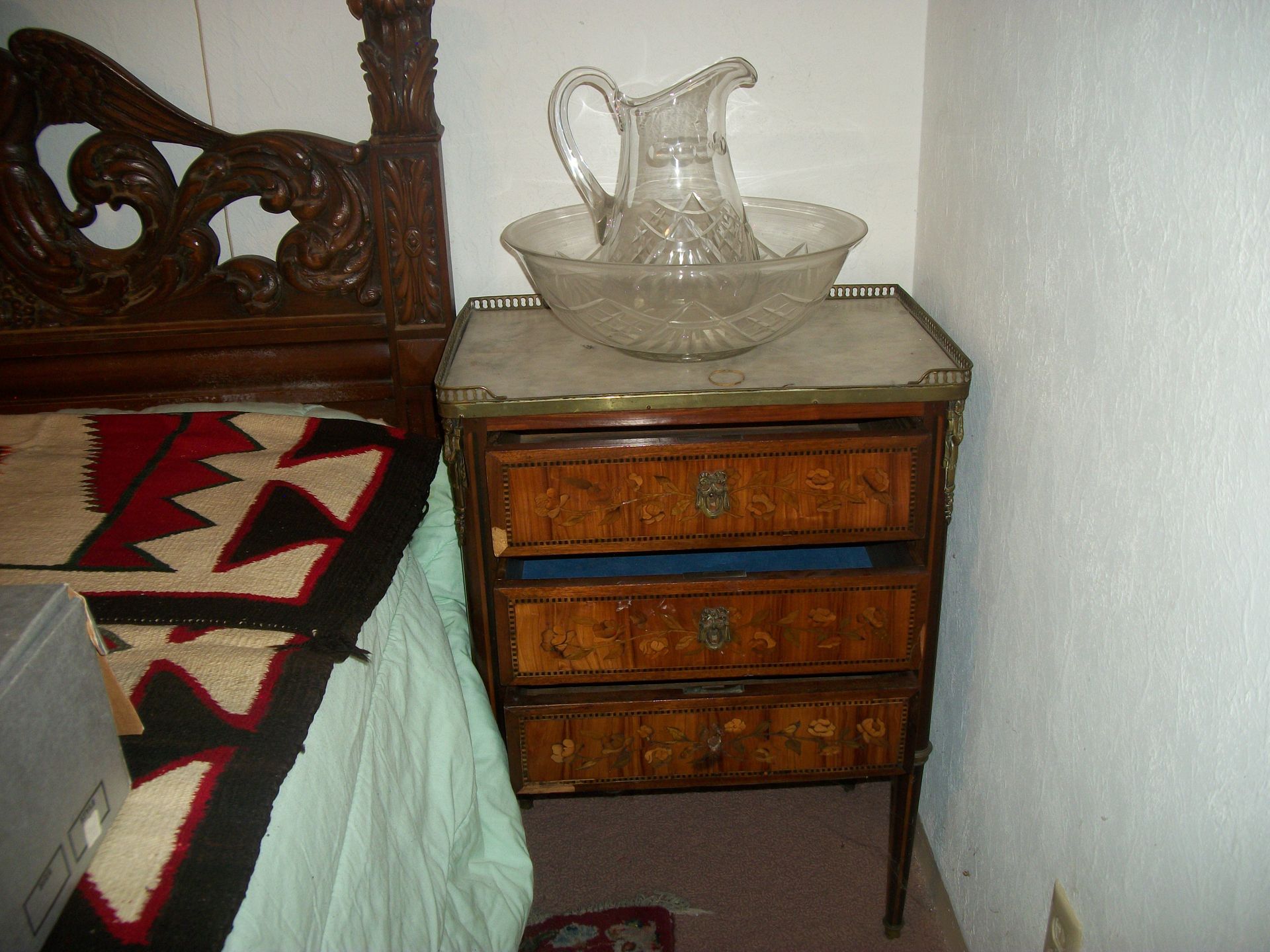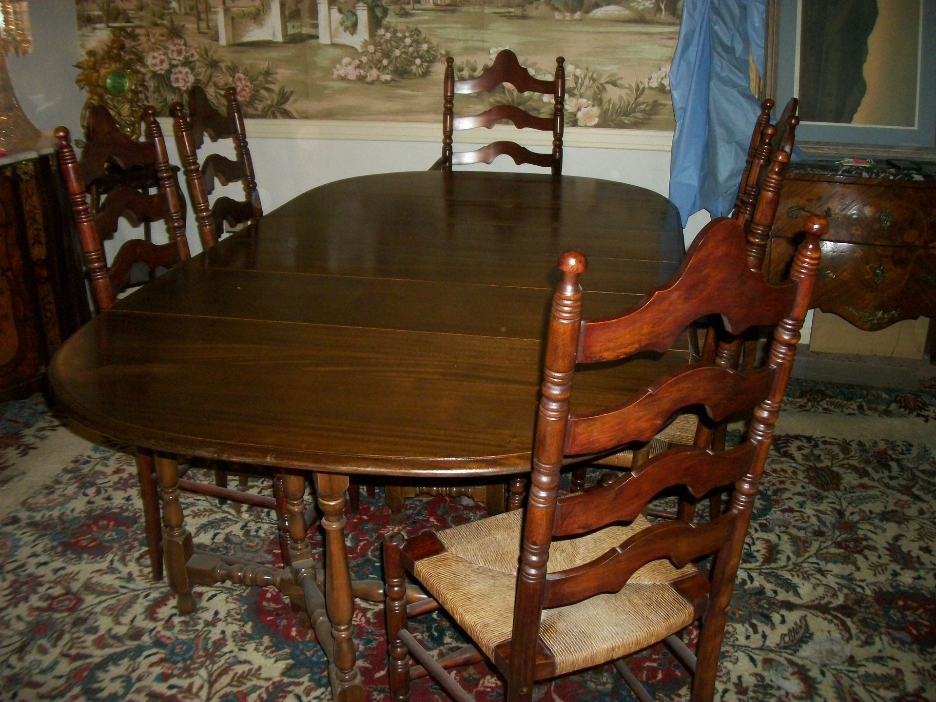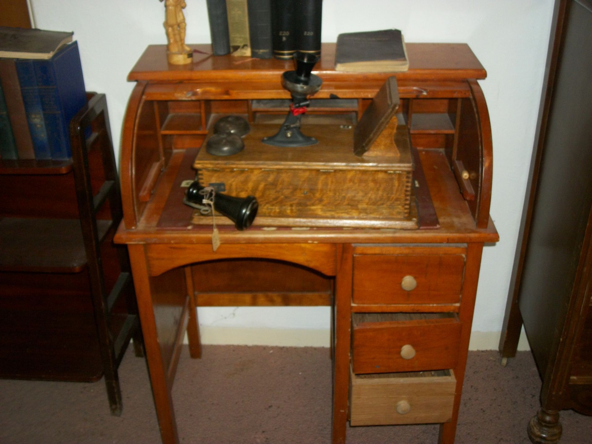 ANTIQUE FURNITURE: Handcrafted China cabinet, marble top chest, marble top end tables/storage, small China cabinet colina/style, wood lamp tables, antique cabinet, dragon leg/footed tables, leather/wood carved dragon claw footed chairs, solid wood 3 pc bedroom suite dresser, chest, bed, drop front desk, 3/4/5 drawer chest, marble top lingerie cabinet, full size hand carved bed, hand carved buffet, claw footed organ stool, marble top night stand, twin bed, coffee table, end table, tea cart, wood 4 drawer filing cabinet, oak library tables, porcelain cook stove, dining table/6 chairs, settee bench, 2/3/4/5/6 deep lawyer bookcases, smoke stand, rocker, fireplace screen