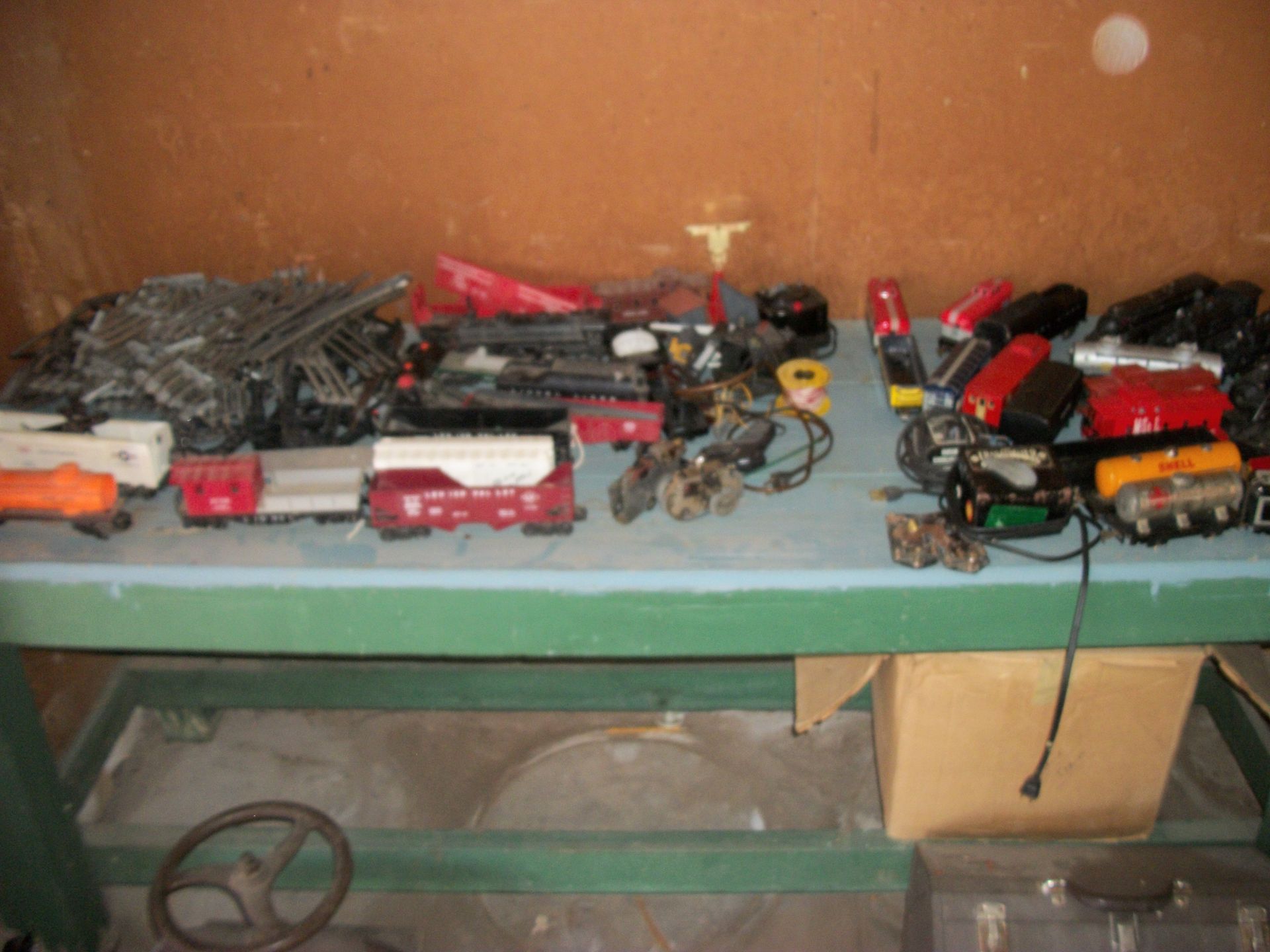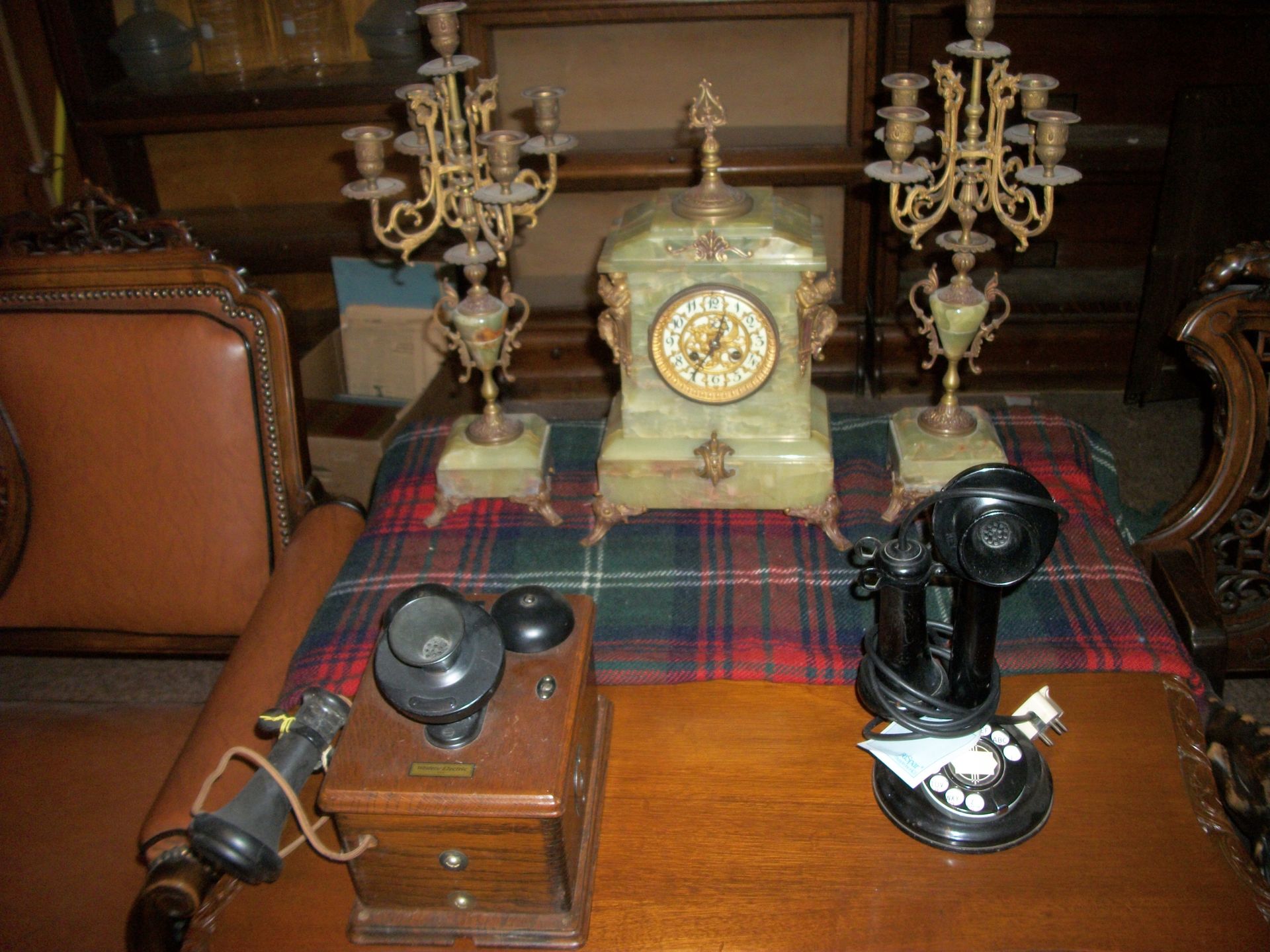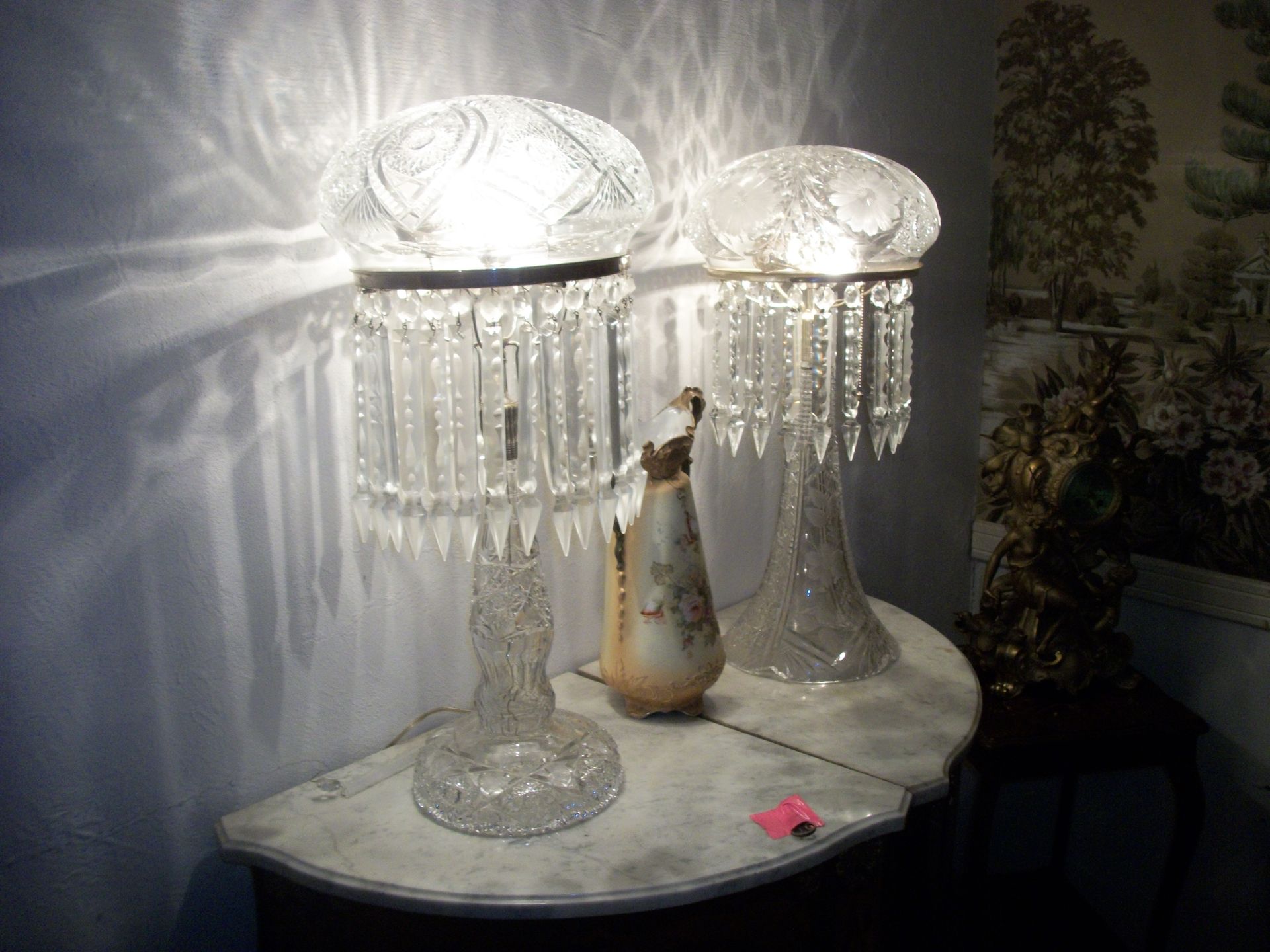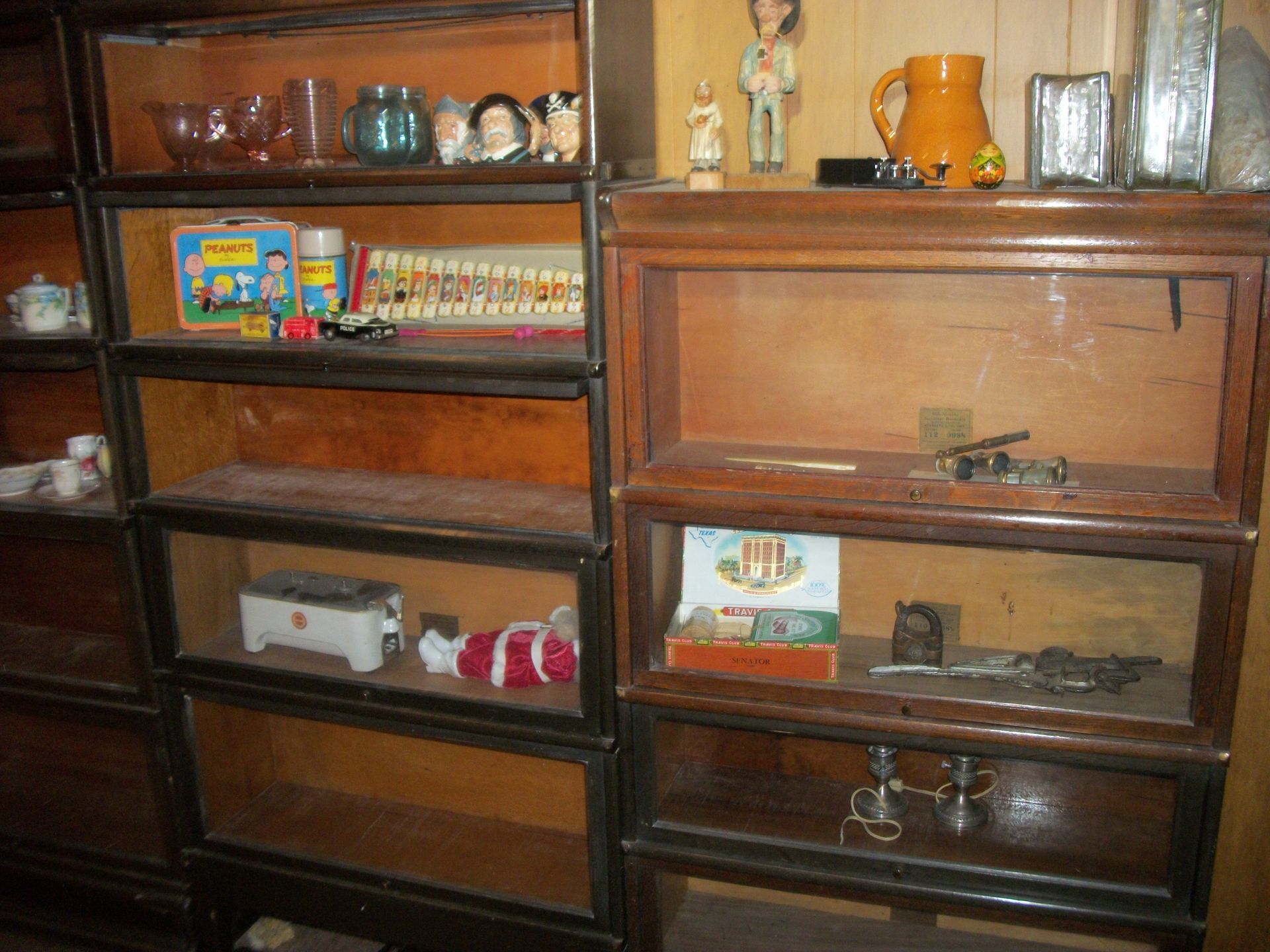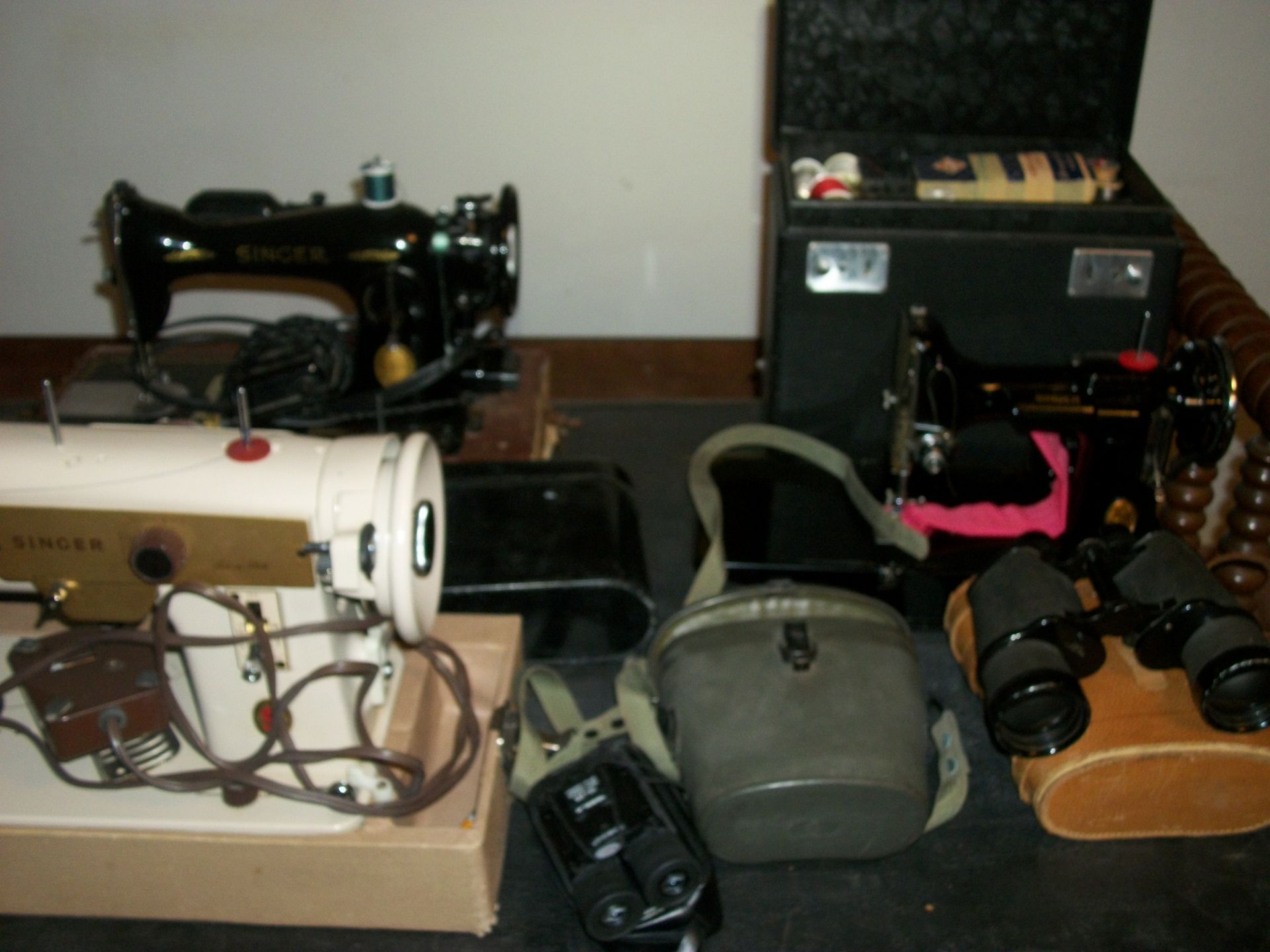 ANTIQUES AND MORE: 2 beautiful crystal lamps, figurine lamps, pitcher/bowl set, floor lamps, hand made floor rugs, Indian blankets, Indian pottery, pyrex, fire king, heavy pressed glass, crystal glass, Hummel pieces, pink depression, Peanuts lunch box/thermos, sterling lamp sets, R S Prussia dishes, Johnson bros set of dishes, biscuit jar, porcelain, statures, bust, cupid brass clock, mantel clocks, wall clocks, coo-coo clocks, green marble mantel clock, 2 candle abras, antique wall mount telephones, radial turn dial telephones, medical design brass statues, hand carved mirrors, shadow box mirrors, gum ball machine, American Flyer Frontiers-men train set in original box, 2 other train sets, American MFC Co. Character Reading scale, brass pieces, arrow heads, medical beakers, ostrich eggs, antique toys, opera glasses, binoculars, tapestry's, record player, camera/tripods, metal Dr pepper sign, Therma chest cooler, antique press, jewelry, treadle sewing machine base, feather weight singer sewing machines, kids singer sewing machine, marbles, religious items, medical instruments, lounger, child rocker, trunks, water round, water trough, air compressor, clay pots, milk parlor chairs, Bronze Coyote by Roger Aston