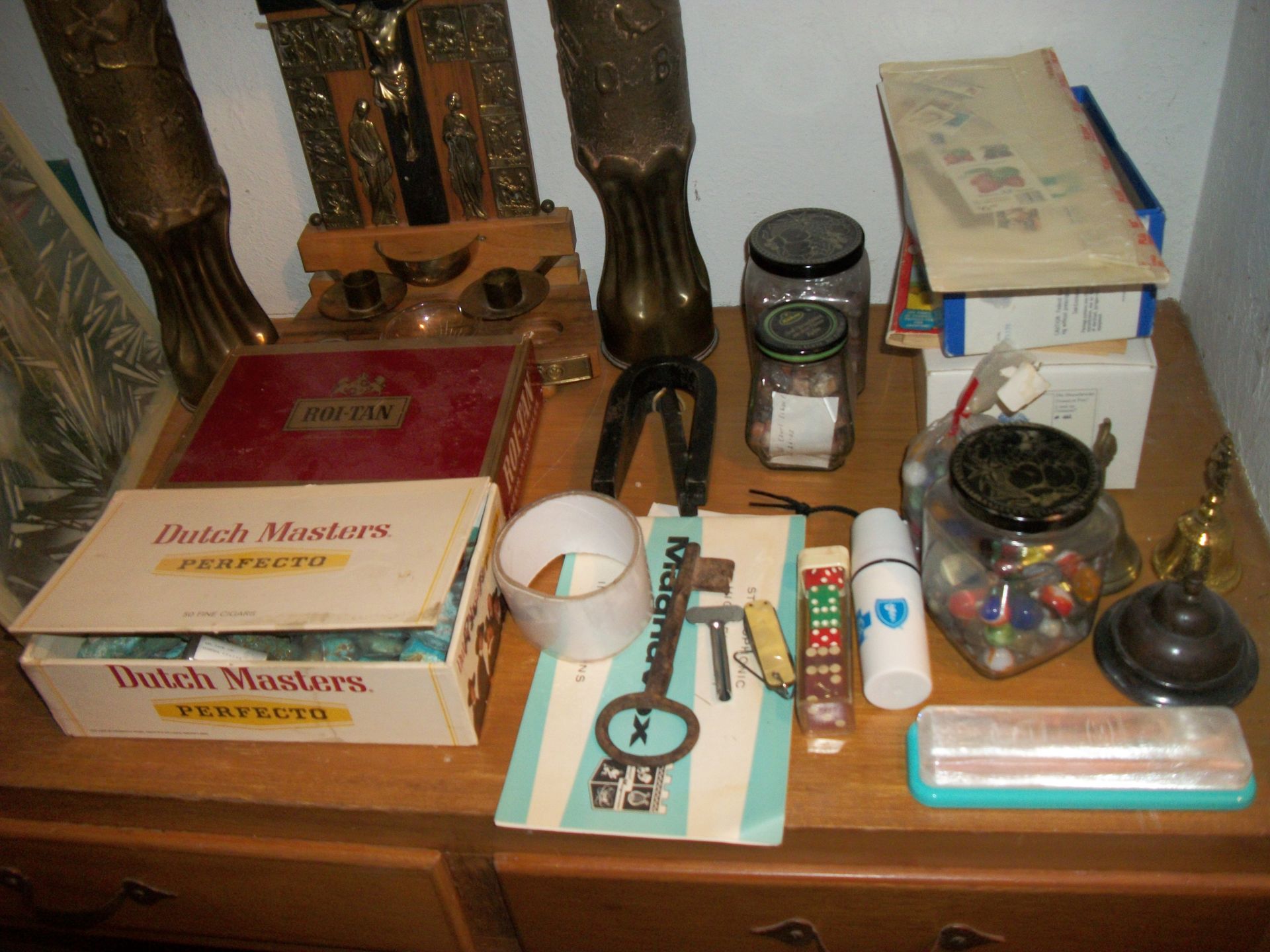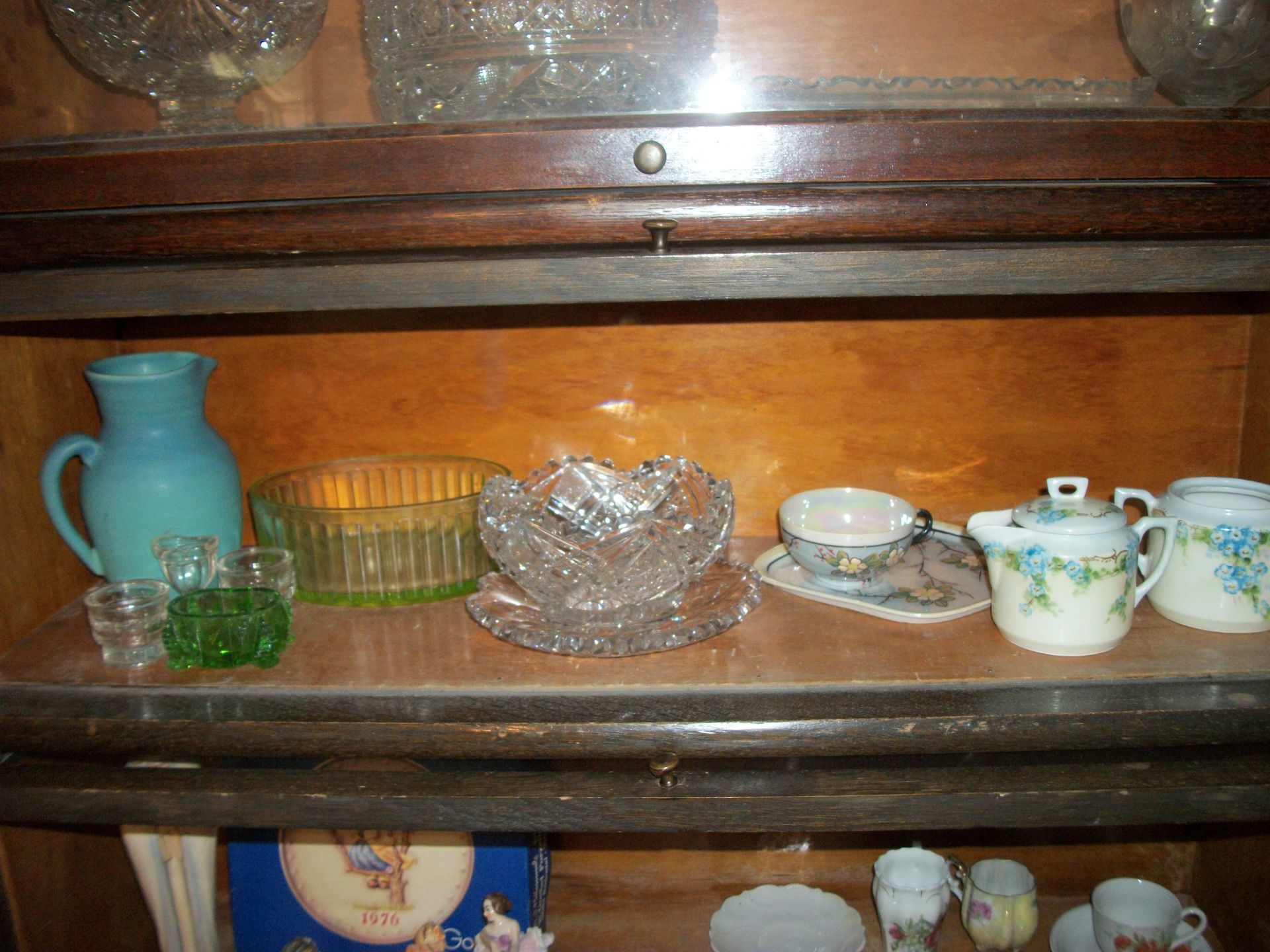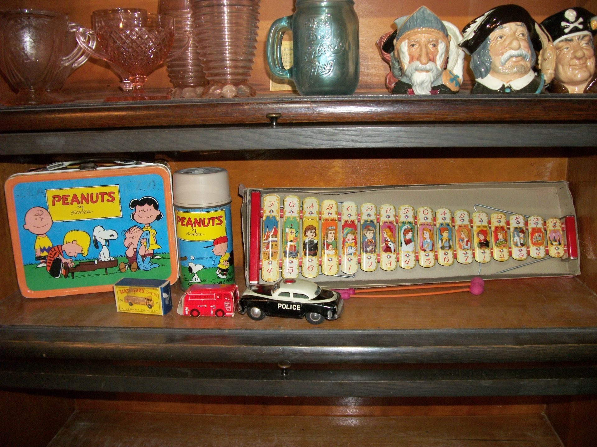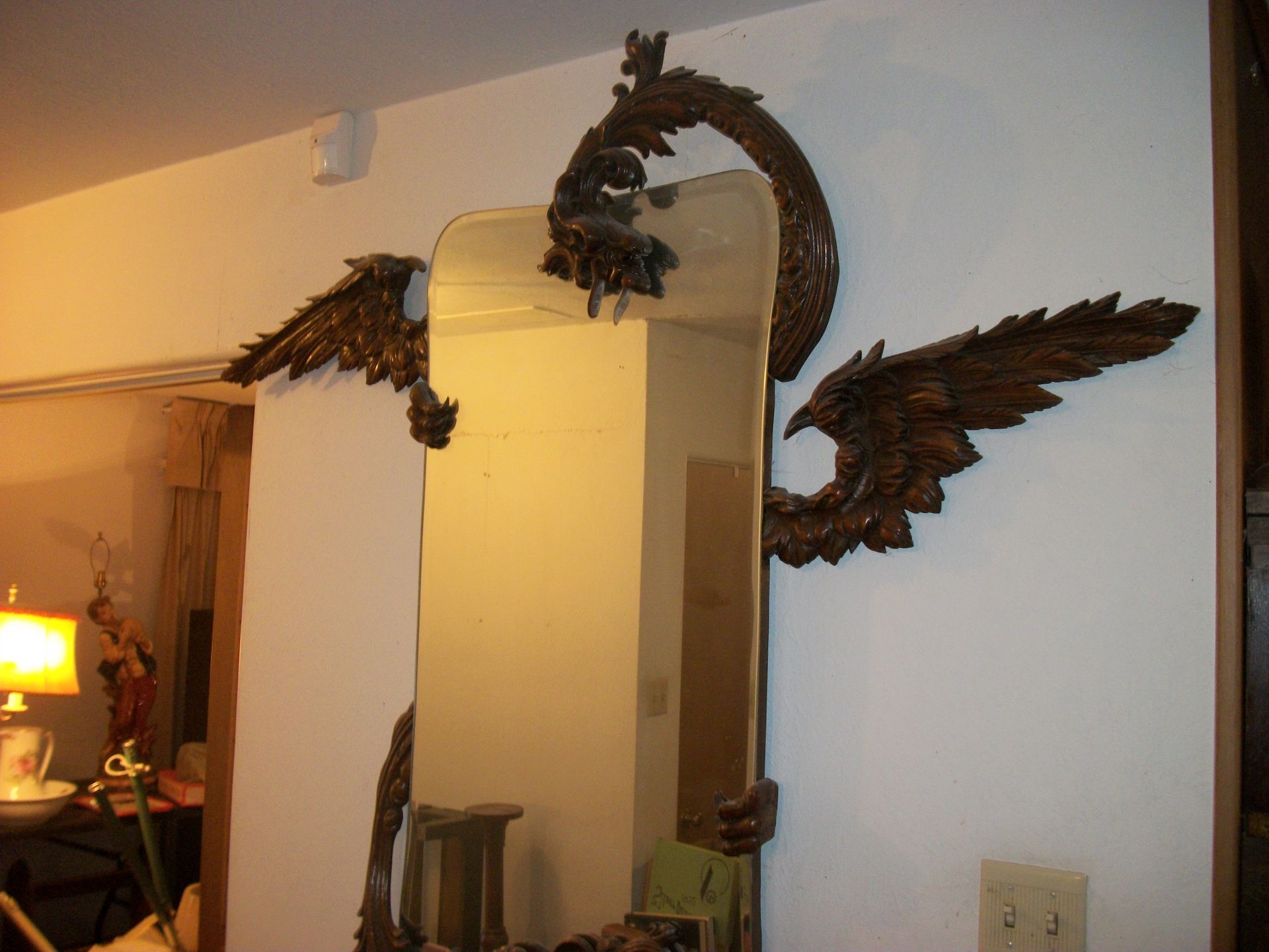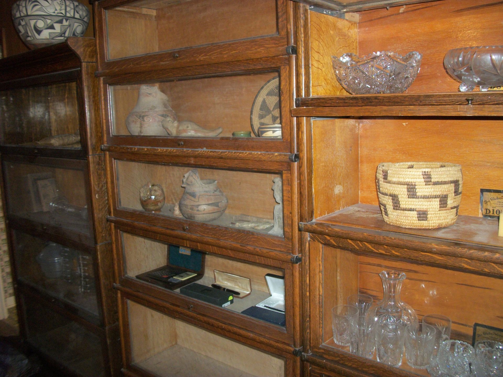 ANTIQUES AND MORE: 2 beautiful crystal lamps, figurine lamps, pitcher/bowl set, floor lamps, hand made floor rugs, Indian blankets, Indian pottery, pyrex, fire king, heavy pressed glass, crystal glass, Hummel pieces, pink depression, Peanuts lunch box/thermos, sterling lamp sets, R S Prussia dishes, Johnson bros set of dishes, biscuit jar, porcelain, statures, bust, cupid brass clock, mantel clocks, wall clocks, coo-coo clocks, green marble mantel clock, 2 candle abras, antique wall mount telephones, radial turn dial telephones, medical design brass statues, hand carved mirrors, shadow box mirrors, gum ball machine, American Flyer Frontiers-men train set in original box, 2 other train sets, American MFC Co. Character Reading scale, brass pieces, arrow heads, medical beakers, ostrich eggs, antique toys, opera glasses, binoculars, tapestry's, record player, camera/tripods, metal Dr pepper sign, Therma chest cooler, antique press, jewelry, treadle sewing machine base, feather weight singer sewing machines, kids singer sewing machine, marbles, religious items, medical instruments, lounger, child rocker, trunks, water round, water trough, air compressor, clay pots, milk parlor chairs, Bronze Coyote by Roger Aston