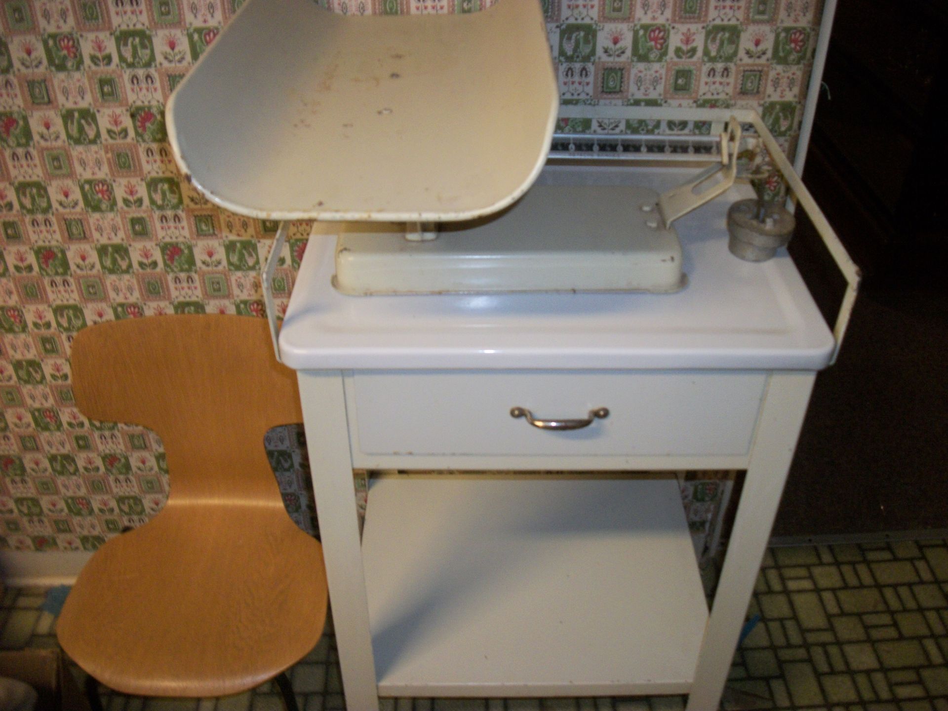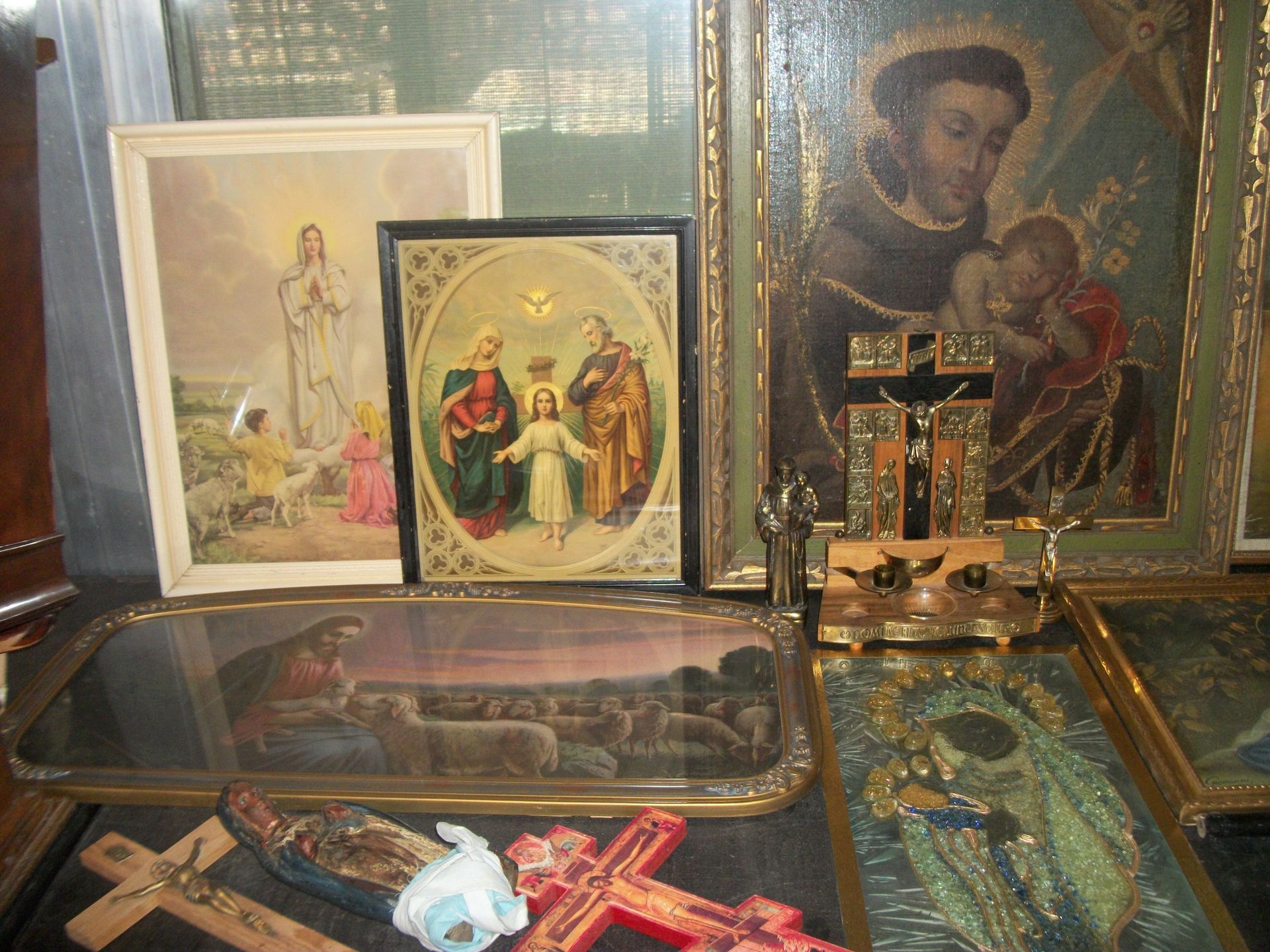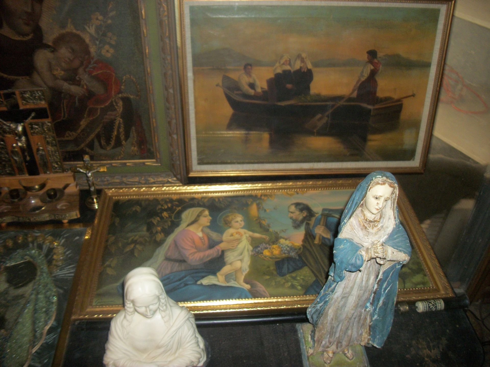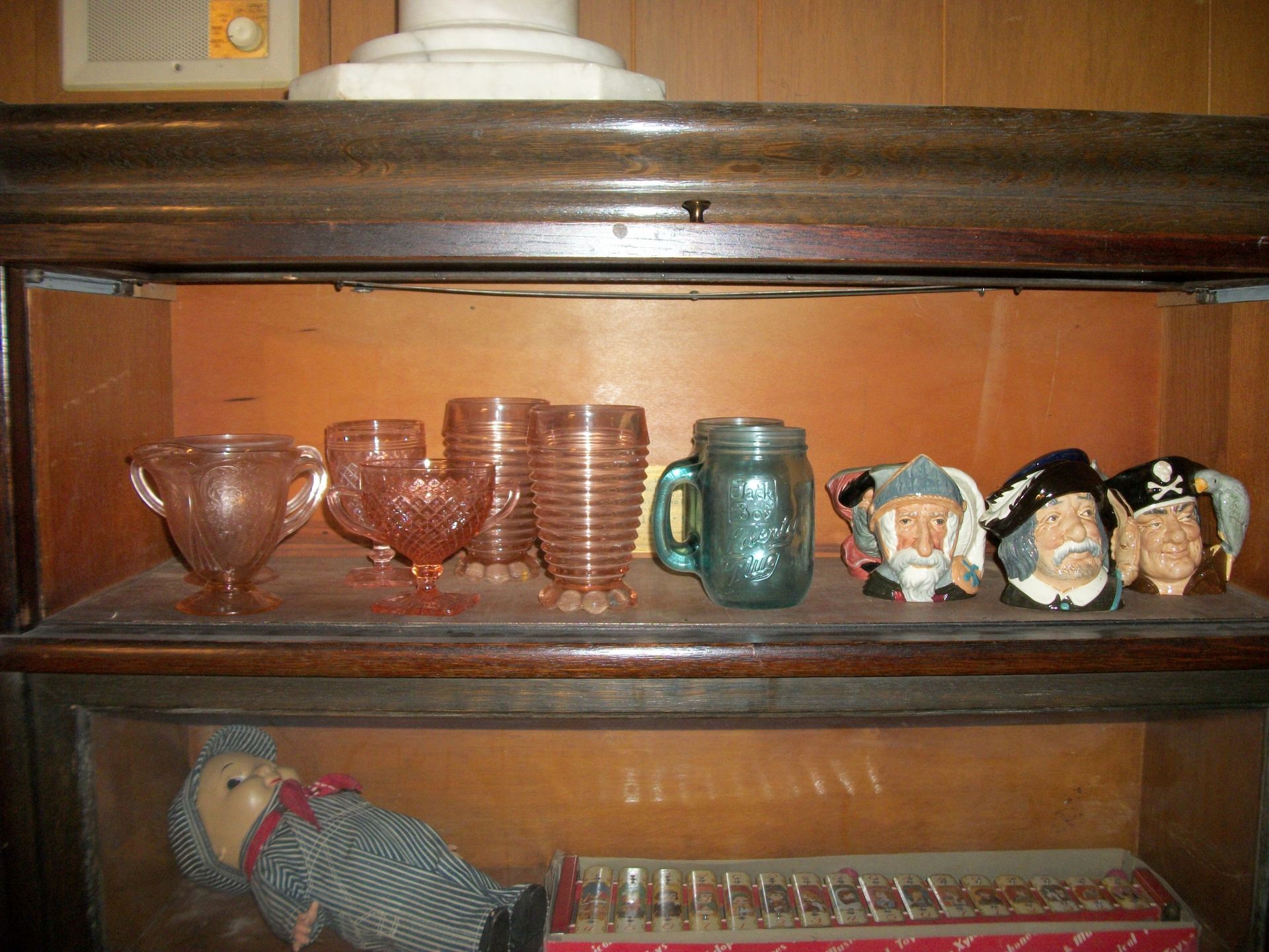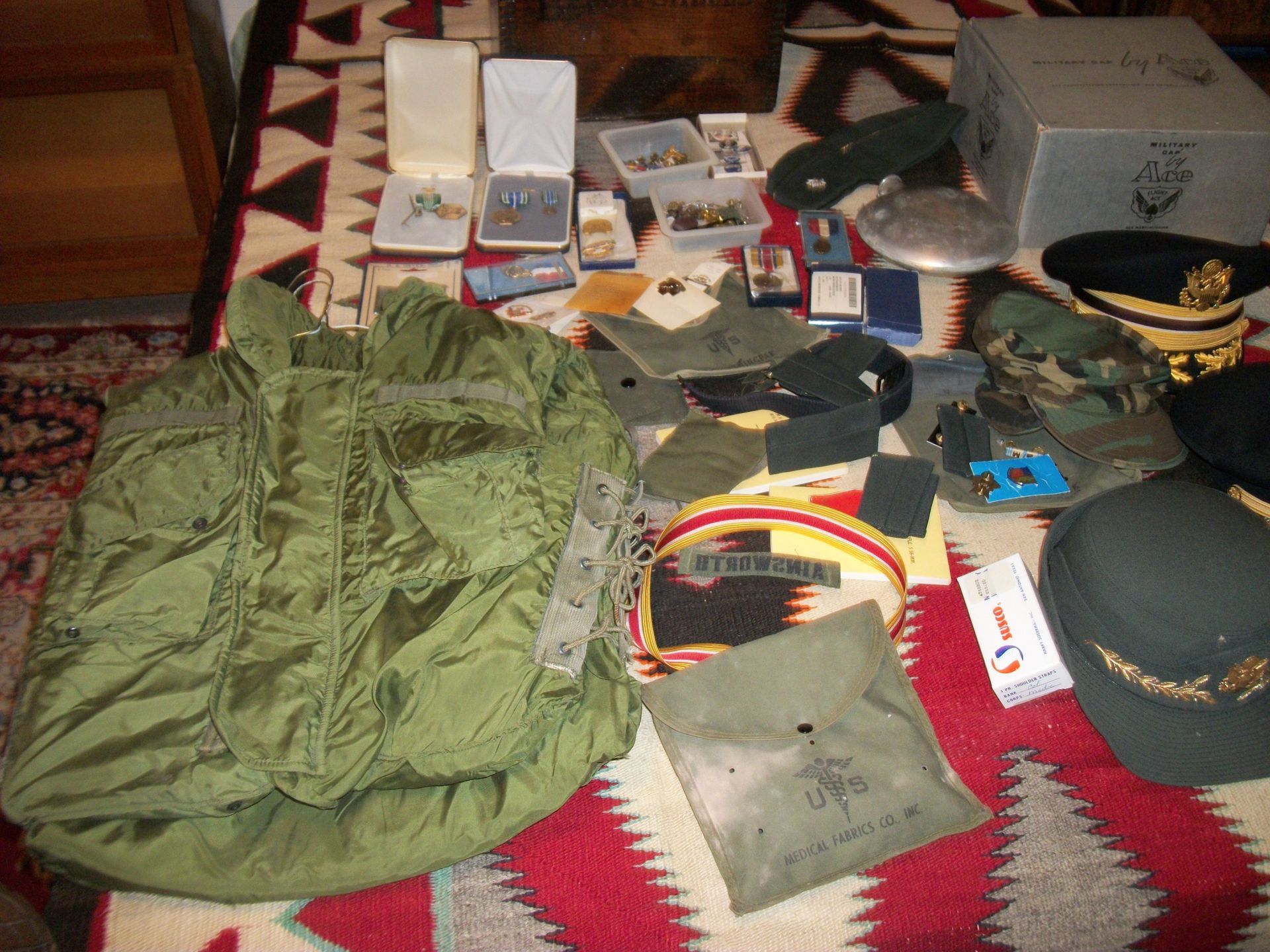 ANTIQUES AND MORE: 2 beautiful crystal lamps, figurine lamps, pitcher/bowl set, floor lamps, hand made floor rugs, Indian blankets, Indian pottery, pyrex, fire king, heavy pressed glass, crystal glass, Hummel pieces, pink depression, Peanuts lunch box/thermos, sterling lamp sets, R S Prussia dishes, Johnson bros set of dishes, biscuit jar, porcelain, statures, bust, cupid brass clock, mantel clocks, wall clocks, coo-coo clocks, green marble mantel clock, 2 candle abras, antique wall mount telephones, radial turn dial telephones, medical design brass statues, hand carved mirrors, shadow box mirrors, gum ball machine, American Flyer Frontiers-men train set in original box, 2 other train sets, American MFC Co. Character Reading scale, brass pieces, arrow heads, medical beakers, ostrich eggs, antique toys, opera glasses, binoculars, tapestry's, record player, camera/tripods, metal Dr pepper sign, Therma chest cooler, antique press, jewelry, treadle sewing machine base, feather weight singer sewing machines, kids singer sewing machine, marbles, religious items, medical instruments, lounger, child rocker, trunks, water round, water trough, air compressor, clay pots, milk parlor chairs, Bronze Coyote by Roger Aston