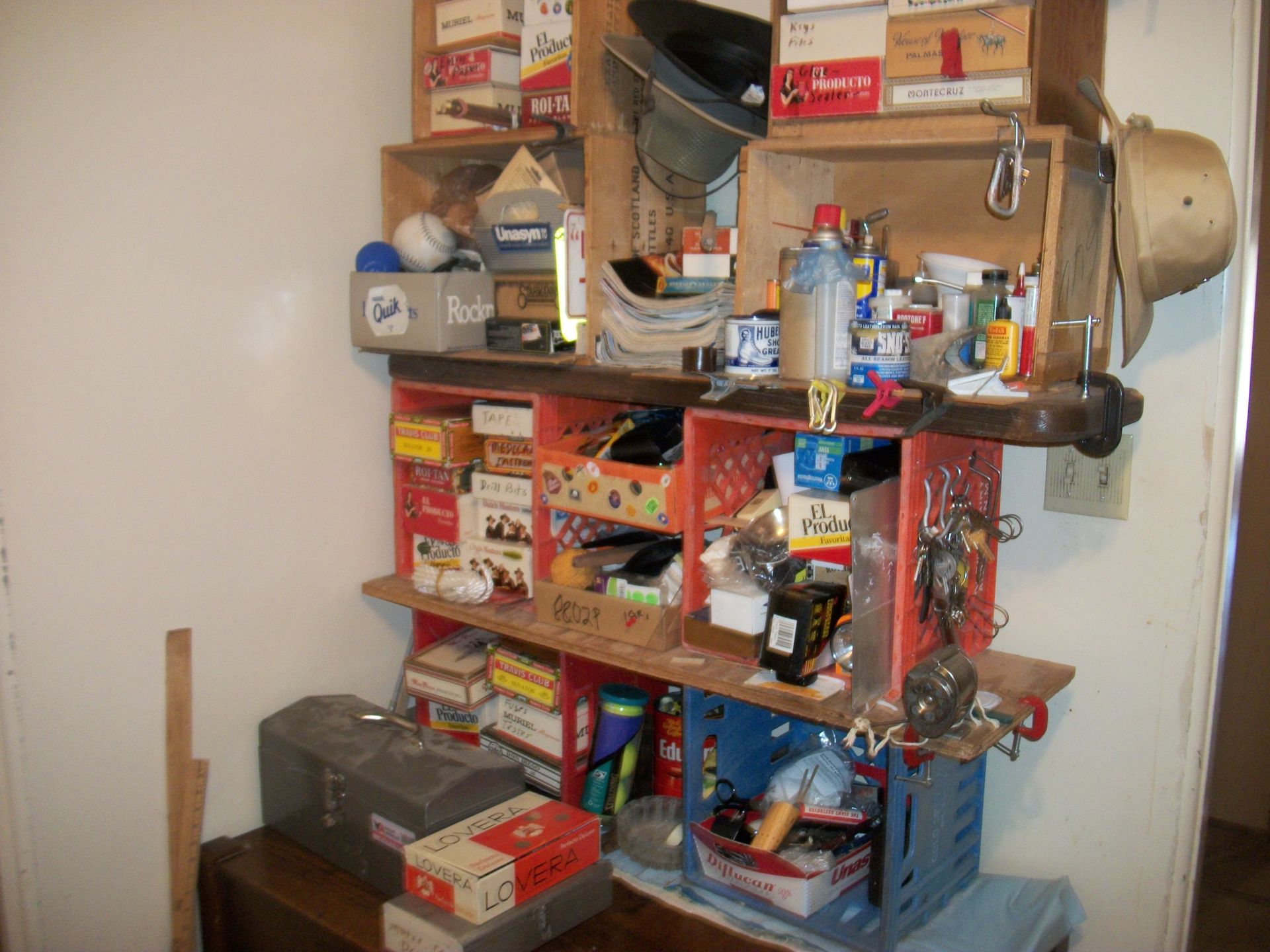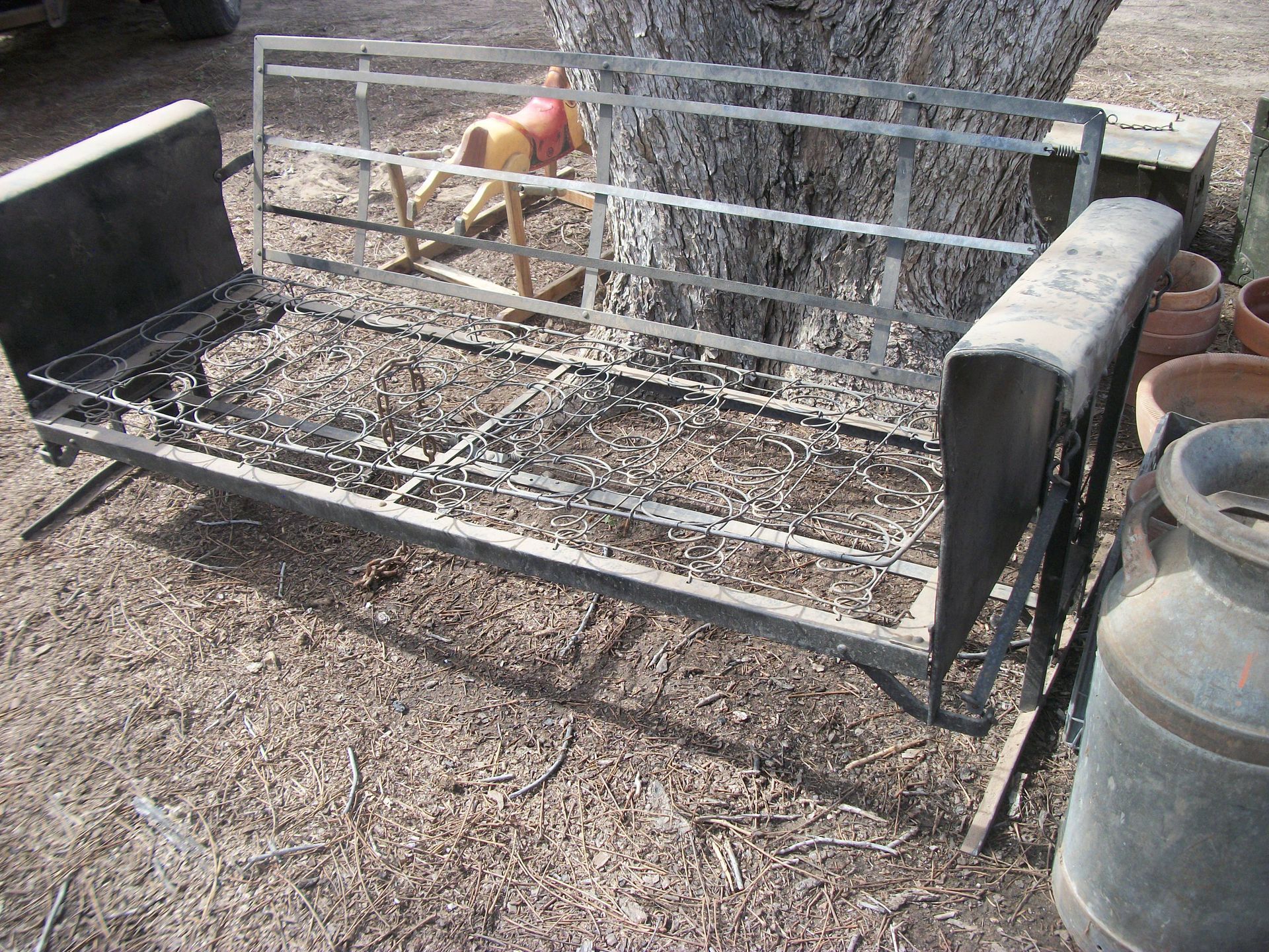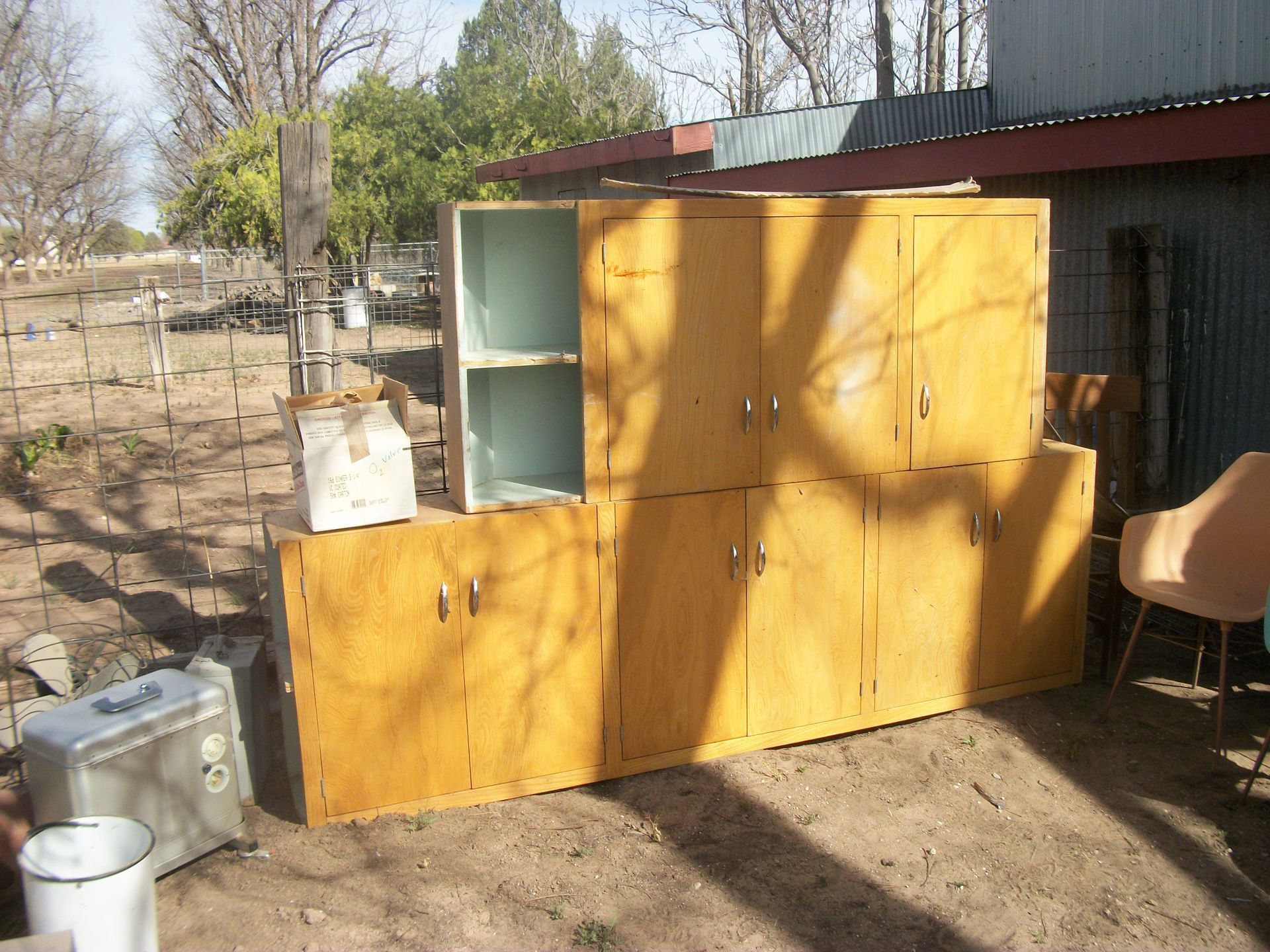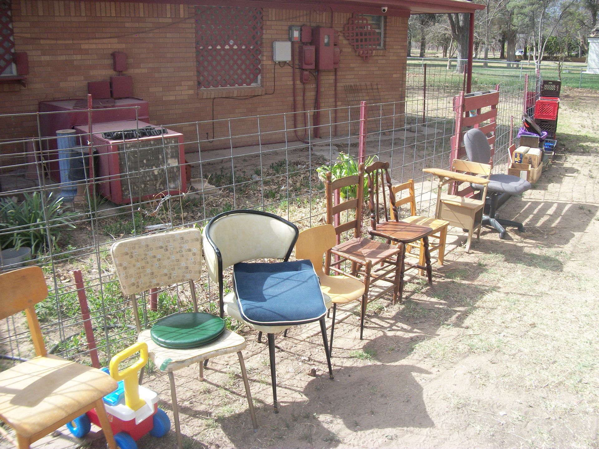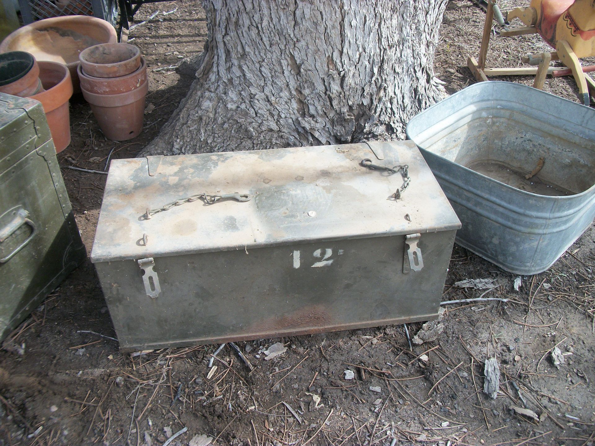 APPLIANCES AND SUCH: Kenmore d/d refrigerator, apartment size refrigerator, small appliances, Nordic ski set, fire extinguishers, baby scales, weed eaters, rocks, chicken feeders, canes, metal medical carts, vizio tv, book shelves, skulls, small sentry sate, tool box, step stools, galvanized tubs, animal traps, prayers, pump motor, pedestal tables, lots of box of contents, plus much more that could be found.