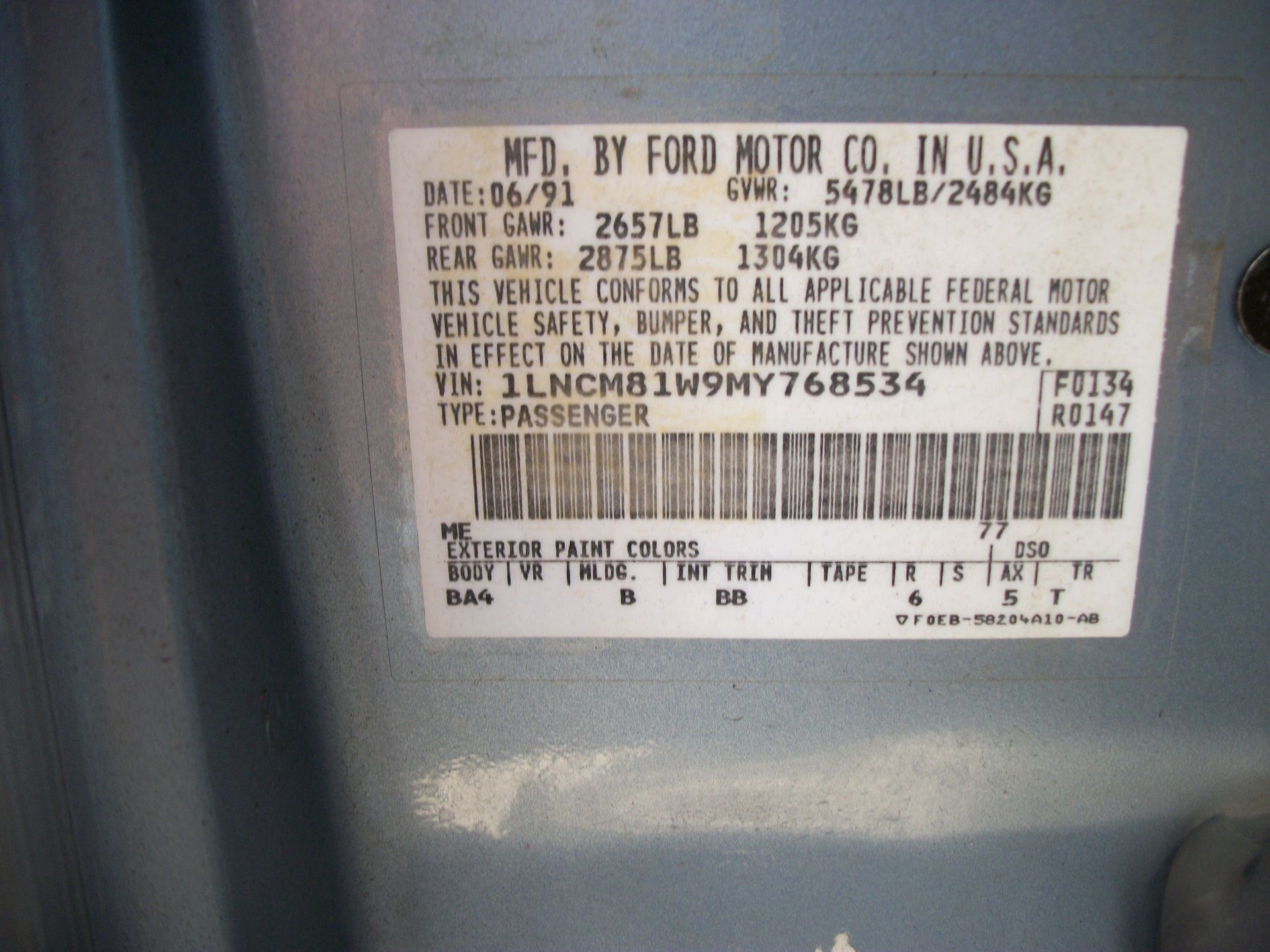 1991 Lincoln Continental with approximately 65,000 miles and in very nice condition.